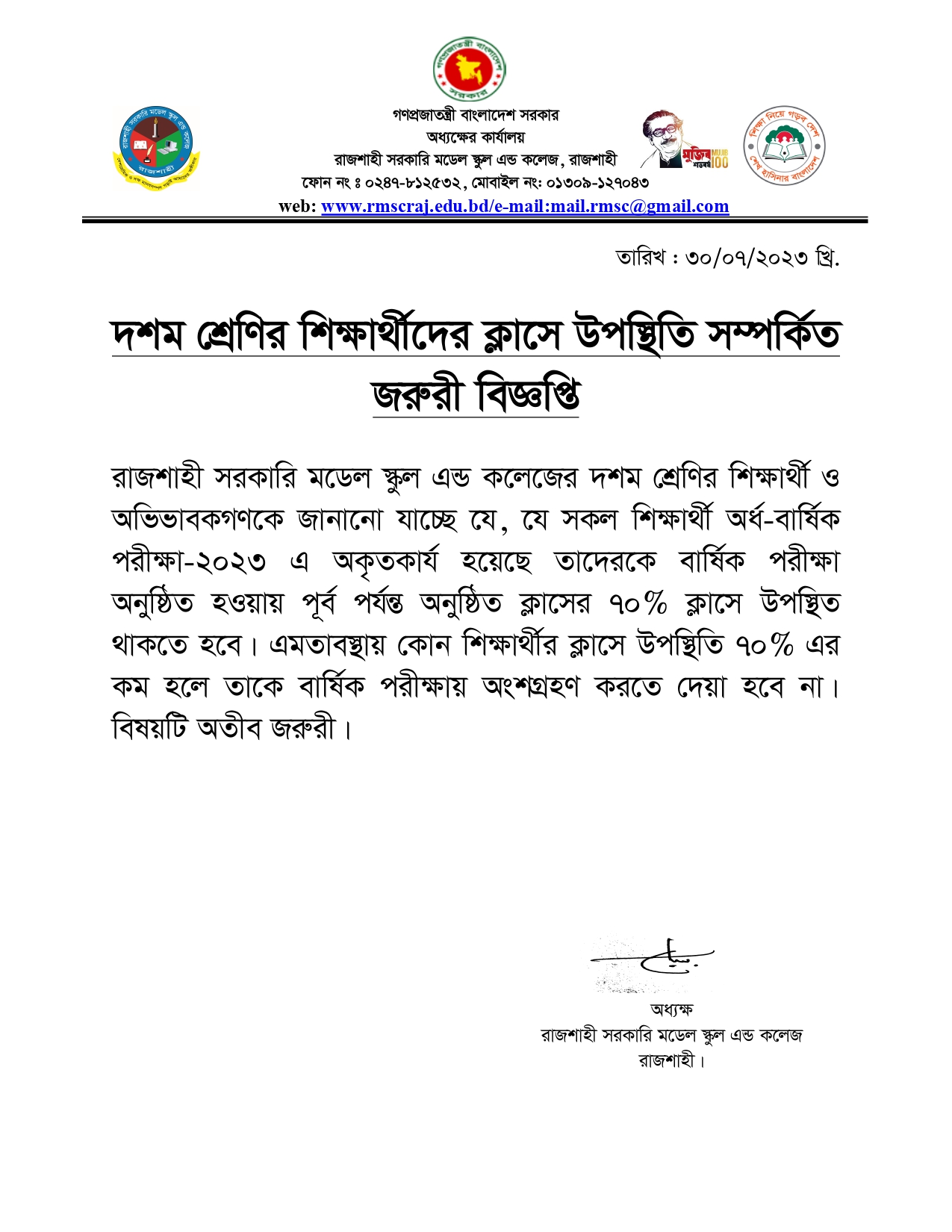 দশম শ্রেণির শিক্ষার্থীদের ক্লাসে উপস্থিতি সম্পর্কিত জরুরী বিজ্ঞপ্তি।